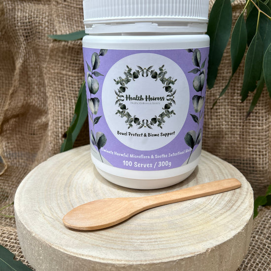 Health Heiress Bowel Protect & Biome Support is a gentle, yet powerful gut powder formulated to bind toxins, sweep out microbial waste, and restore microbial harmony. This 100% plant-based formula combines fibre, mucilage, minerals, and detoxifying botanicals to support smooth elimination, soothe inflammation, and nourish beneficial gut bacteria during cleansing or everyday maintenance.