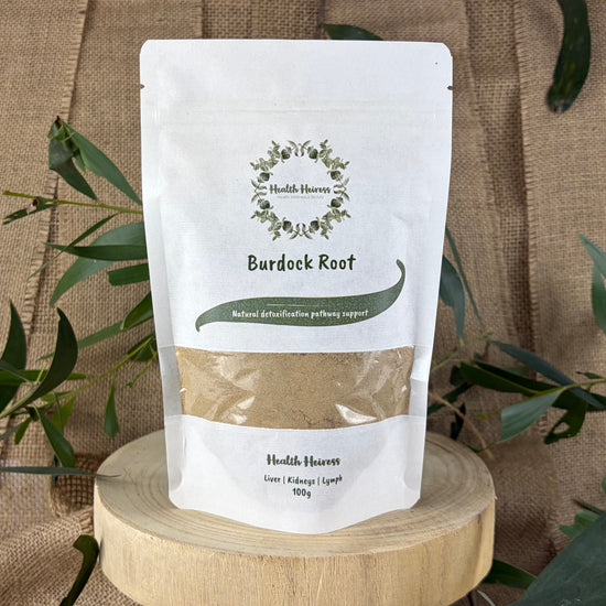 Grounded in ancient herbal wisdom, Health Heiress Burdock Root Powder celebrates one of nature’s most enduring roots. Traditionally used to support the body’s natural cleansing rhythms and inner vitality, Burdock Root is rich in plant antioxidants and prebiotic fibres that nourish, balance, and renew from within.*