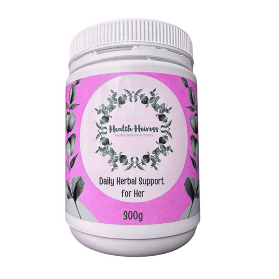 The Health Heiress Daily Herbal Support for Her is a naturopathically formulated blend designed to meet that invitation with nature’s wisdom. Each ingredient is carefully chosen to help bring calm, clarity, and gentle energy back to your day the way nature intended.